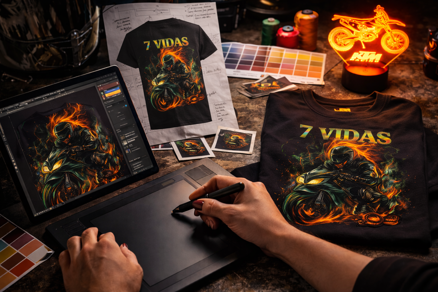 Te presentamos una propuesta visual adaptada al formato de camiseta y a la técnica más adecuada.